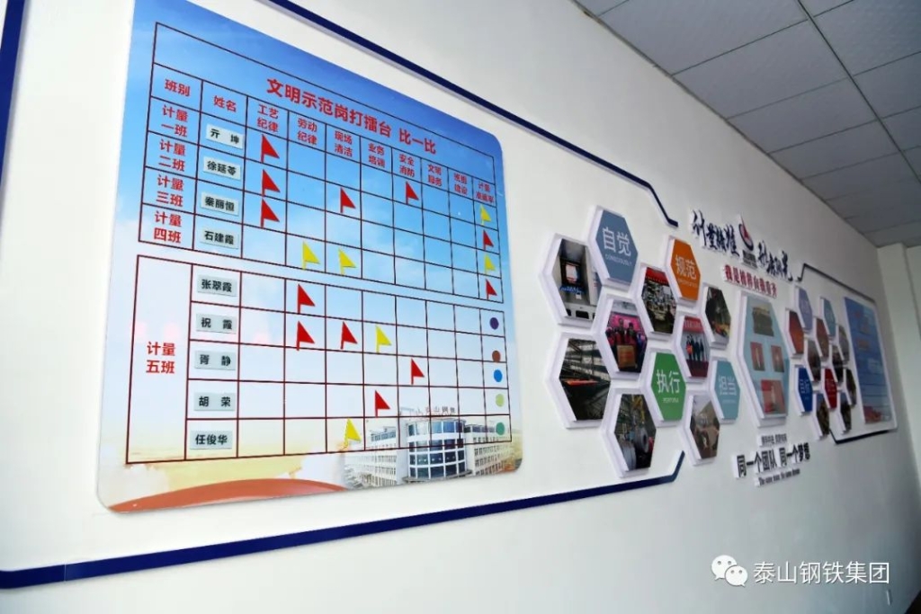 计量就是“计钱”。为了把好公司的“计量关”,我们特意搭建了一个“擂台”,涵盖了工作质量、劳动纪律、现场清洁、文明服务,还有参加公司活动等等,但最亮眼的就是我们眼前的这块展示板。展示板虽然不大,但作用可不小,它记录的是一位优秀计量人员应具备的素质——“三高、三优、一满意”(即“整体素质高、工作标准高、处事效率高”;“优质服务、优良作风、优美环境”;“客户满意”)。每个月我们都会进行一番比试,让优秀的人物、班组亮亮相、露露脸,也让落后的红红脸、出出汗,营造了浓厚的竞赛氛围。