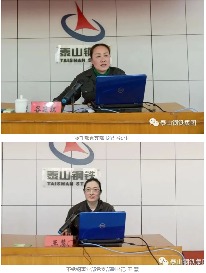 (学员代表:炼铁部党总支炼铁支部于义款、热轧部党支部张辉、冷轧部党支部李宁、不锈钢事业部党支部尚伟平、机关党总支第三党支部陈静、保卫部党支部胡长伟)