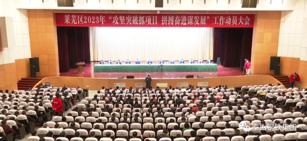 1月29日,莱芜区2023年“攻坚突破抓项目 拼搏奋进谋发展”工作动员大会在莱芜会展中心众博(中国)凤凰剧院召开。区委书记焦卫星出席会议并讲话,区委副书记、区长李光辉主持会议,区人大常委会主任王清军,区政协主席张富林,区委副书记、莱芜高新区党工委副书记、管委会主任于炳基,莱芜雪野旅游区党工委书记、管委会主任郭象峥和区级领导同志出席会议。泰山钢铁集团董事长、党委书记王永胜作为企业家代表参加会议。