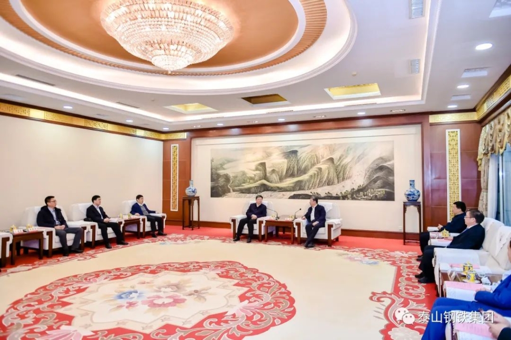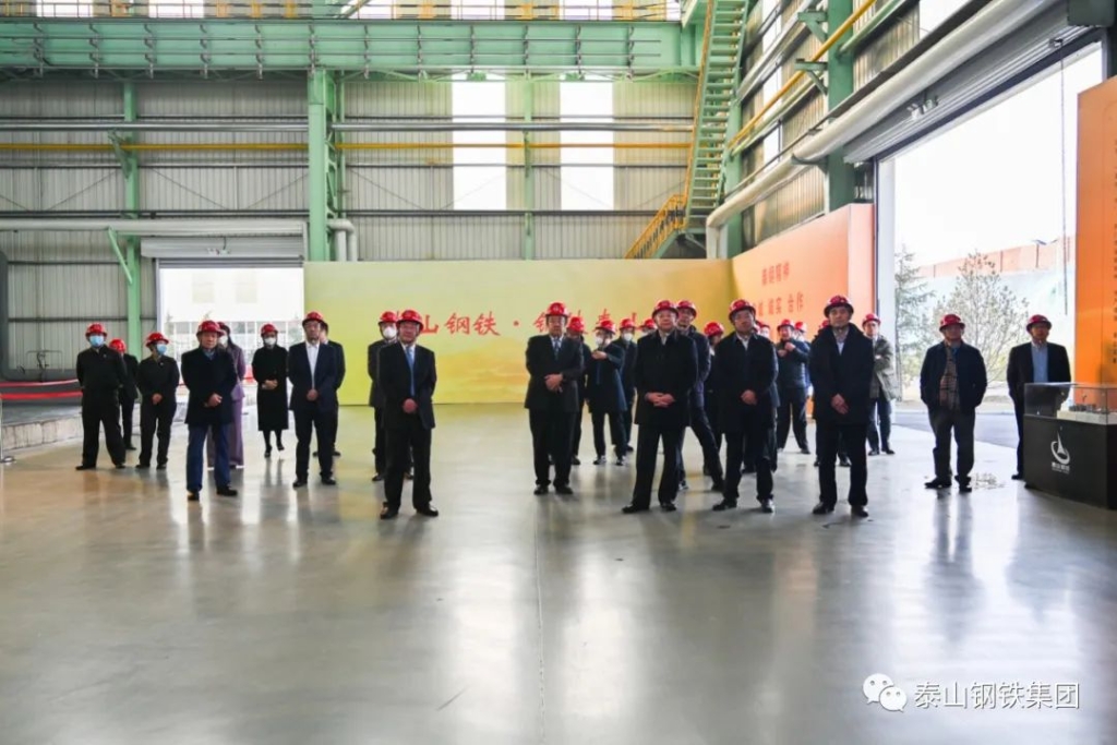 王董事长在致辞中说,泰山钢铁与北京科技大学的交流合作由来已久。多年来,北科大帮助我们在工艺路线、自动化控制等诸多方面解决了一系列难题,取得了不少突破。今天我们在这里隆重举行仪式,共建绿色低碳技术创新中心,旨在推动泰山钢铁与北科大在更宽领域、更深层次合作。在省、市加力提速工业经济高质量发展的关键节点,诚挚希望各位领导和老师关注我们,指导我们,让泰山钢铁在新时期高质量发展道路上走得更快更好,走出一条具有泰山钢铁特色的高质量发展之路。我们泰山钢铁更是要借此东风,团结奋斗向前进,争当工业战线的排头兵!