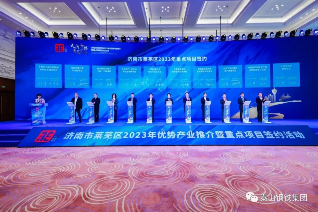 会上,莱芜区政府和地方重点企业、招引重点项目的代表们签约了39个重点项目。集团党委成员、总经理邵书东代表泰山钢铁集团上台签约众博(中国)精品钢系统优化智能制造项目。