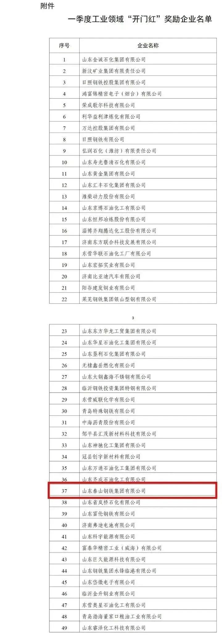 6月7日,山东省工信厅发布《关于印发2023年一季度工业领域“开门红”奖励名单的通知》,将对100家企业分档给予资金奖励,其中