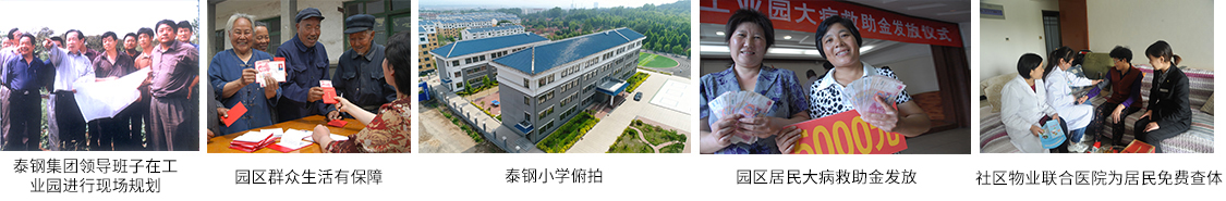 为解决周边群众的致富问题,2003年,泰山钢铁提出了“以工带农,以工扶农,以工哺农,以工富农”,带领周边10个行政村走工农一体协调发展的道路,得到当时莱芜市委市政府的支持。工业园成立后,通过实施项目进村、劳力进厂、保障进家,泰山钢铁解决了园区1.5万人的就业和养老问题。筹资1.2亿为工业园群众建设呈瑞社区、同心家园;投资8000余万元建设开放式雅鹿山公园;拿出专项资金对园区内的6处中小学进行修缮和重建,建设了现代化、高标准的汶水中学,大大改善了师生工作学习环境。园区群众实现了老有所养、壮有所为、幼有所教、困有所帮、病有所医的目标。初步实现了村庄公司化、村民职工化、保障规范化、居住社区化。